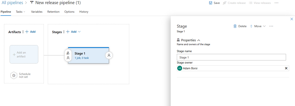 We can also rename the Release Pipeline by selecting the title in the header and clicking the Save button to the right of the field.