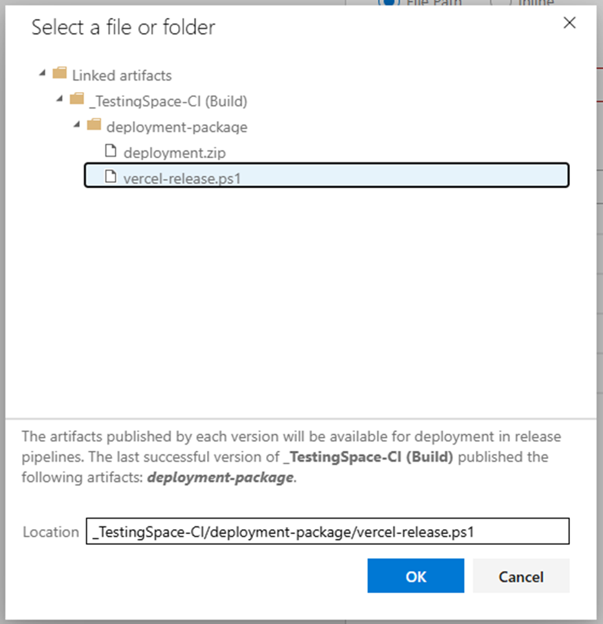 Select the vercel-release.ps1 file and click OK.